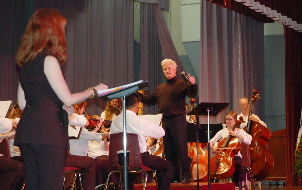 Stephen Byess, the musical director and conductor of the North Mississippi Symphony Orchestra, conducted the orchestra here on Friday. He and other personnel from the symphony worked with New Albany music teacher Celia House to make the Link Up program successful.