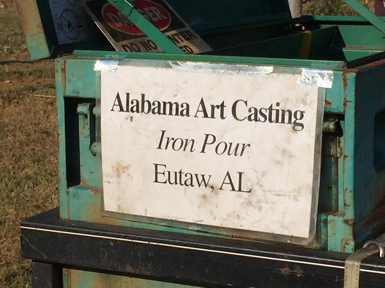 - Mid-morning, the folks from Alabama Art Casting began setting up their traveling foundry in preparation for Fire on the River. Gray iron melting started a little after noon, and pouring followed in a couple of hours. (More about Fire on the River in a later feature.)
